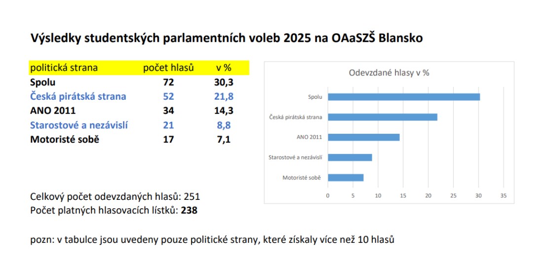 Svůj hlas ve studentských volbách odevzdalo celkem 251 studentů. Děkuji všem voličům i spoluorganizátorům.